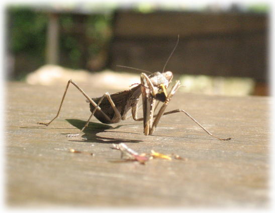 そんな今日の一枚は。。。 カマキリです。 ここのところずっと無銭連泊を繰り返しています(笑) 優雅にお食事中みたいなので、見かけたらそっとしてあげてください。 |