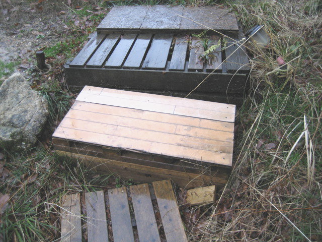 そんな風に気分が良くなっていたらやってしまいました。。。 写真はオートサイトの階段です。 手作りなので多少の傷みとかはご勘弁下さい。 この階段でつるっと滑ってこけてしまいました(T△T) みなさん、雨の日の足元は要注意ですよ!! |