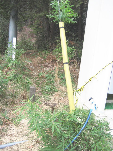 さて、今日の一枚は生命を感じさせる一枚。 電線にしがみついている笹。 しがみついたがゆえに中間は隠れることに。。。 いや、もしかしたら穴があったので入りたかったのかも知れないですね。 |