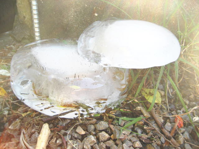 さて、今日の一枚は、 氷だるまです。 勝手に名前をつけましたが、見事な首ずれ。。。 ある意味カッコいいと思いました。 でも、氷を地面に捨てるのは決してしないようにお願いします。 |