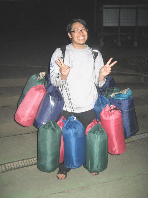 さて、今日の一枚は・・・ 本日お泊りの学生団体のスタッフさんですヽ(´ロ`) 大広間を両方使用しており、約40人のお泊りです。 スタッフさんは先に来てシュラフを30個ぐらい借りたのですが・・・