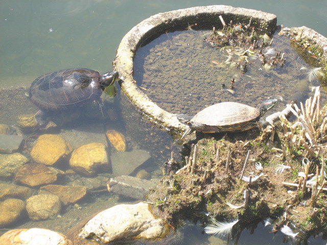 さて、今日の一枚は 亀三兄弟の二匹目を激写!! まだ一匹しか見たことなかったので、かなり嬉しいですヽ(´ロ`) 三匹揃ったら竜宮城までつれってってくれるかなぁ。。。 |