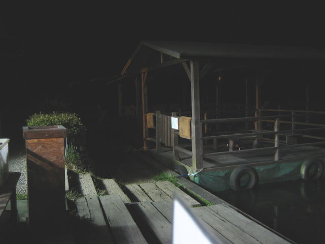 さて、今日の一枚は夜の犬山キャンプ場・・・ 略して夜キャンです。 本日大活躍だった水上デッキも、電気がないと怖いですね(T△T) この水上デッキでの夜桜を楽しみながら呑むのもいいですねヽ(´ロ`) 夜桜の写真取れるかな。。。 |