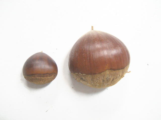 さて、今日の一枚は、 栗です。 左が場内で拾った栗、右が自然林で拾った栗。 場内小さい(T△T) う〜ん、栄養不足なのですかねぇ・・・ |