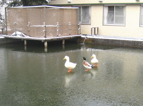 アヒルたちが暴れ回っております。 今まで氷のせいで泳げなっかた鬱憤をはらすかのように。