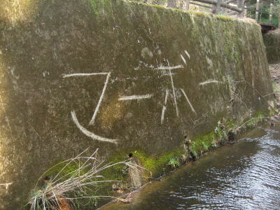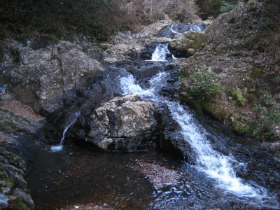 キャンプ場から歩いて20〜30分程度歩くとある 「五段の滝です」